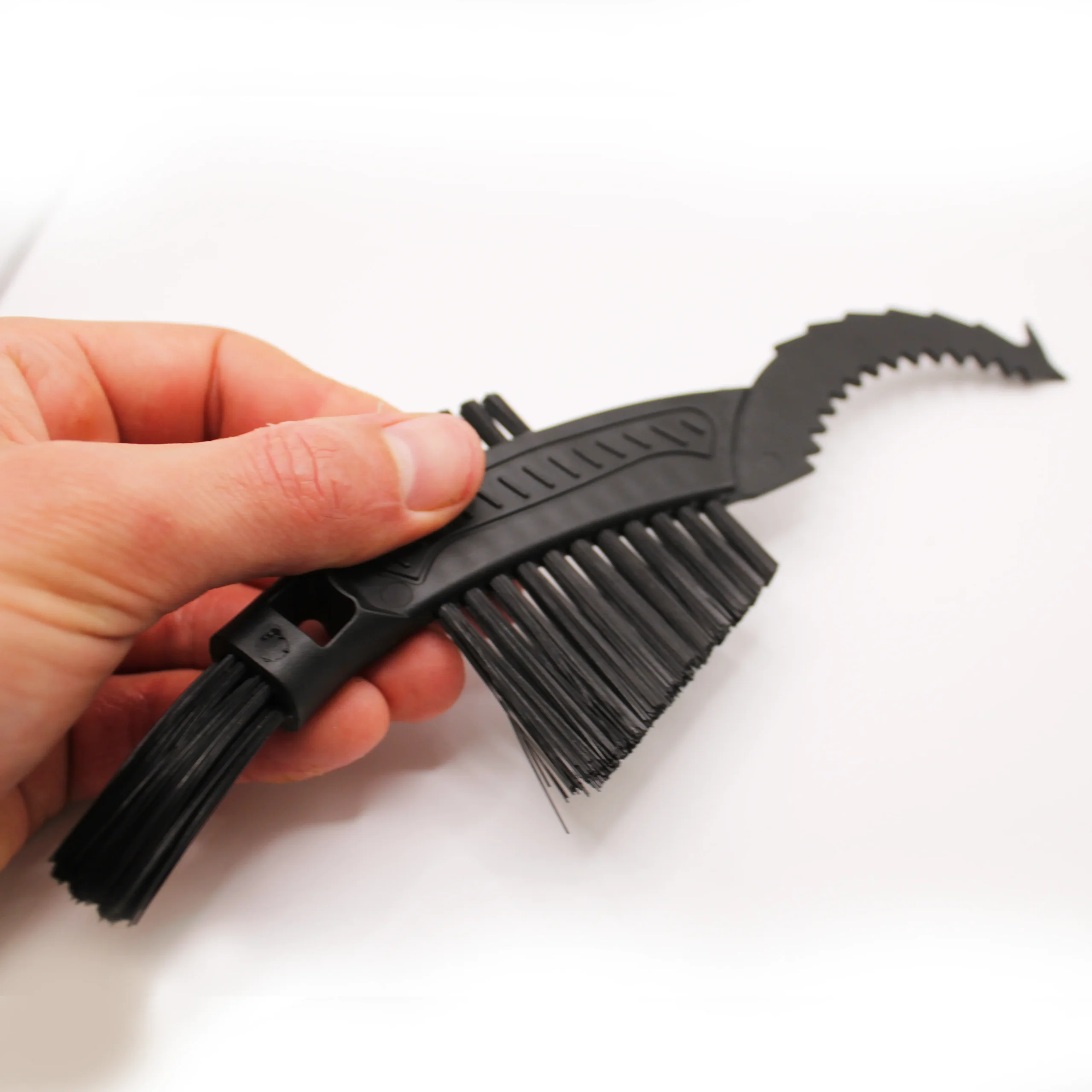 De stevige tandjes schrapen moeiteloos hardnekkig vuil weg. Met de veelzijdige borsteltjes kun je niet alleen je ketting schoonmaken, maar ook je rembladen en andere lastig bereikbare onderdelen zonder de ketting te hoeven verwijderen.